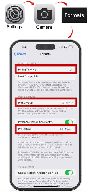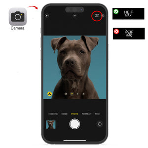 Once you are in photo mode and ready to take your photo, make sure "HEIF MAX" in the upper right hand corner is selected (has no line through it). You can now take your photo and enlarge it to whatever size you like.